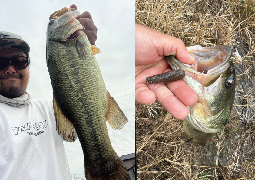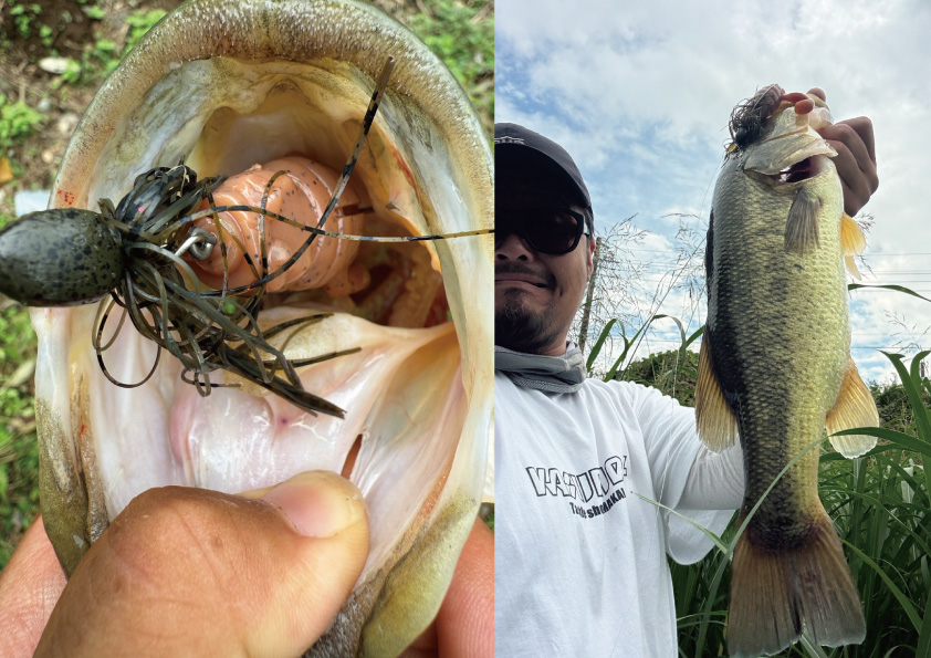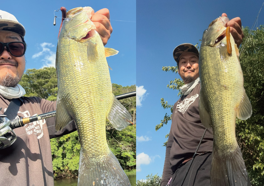 表層付近のスナックジグ+スクーパーフロッグダディ、中層のギャップジグ+BUダディL。