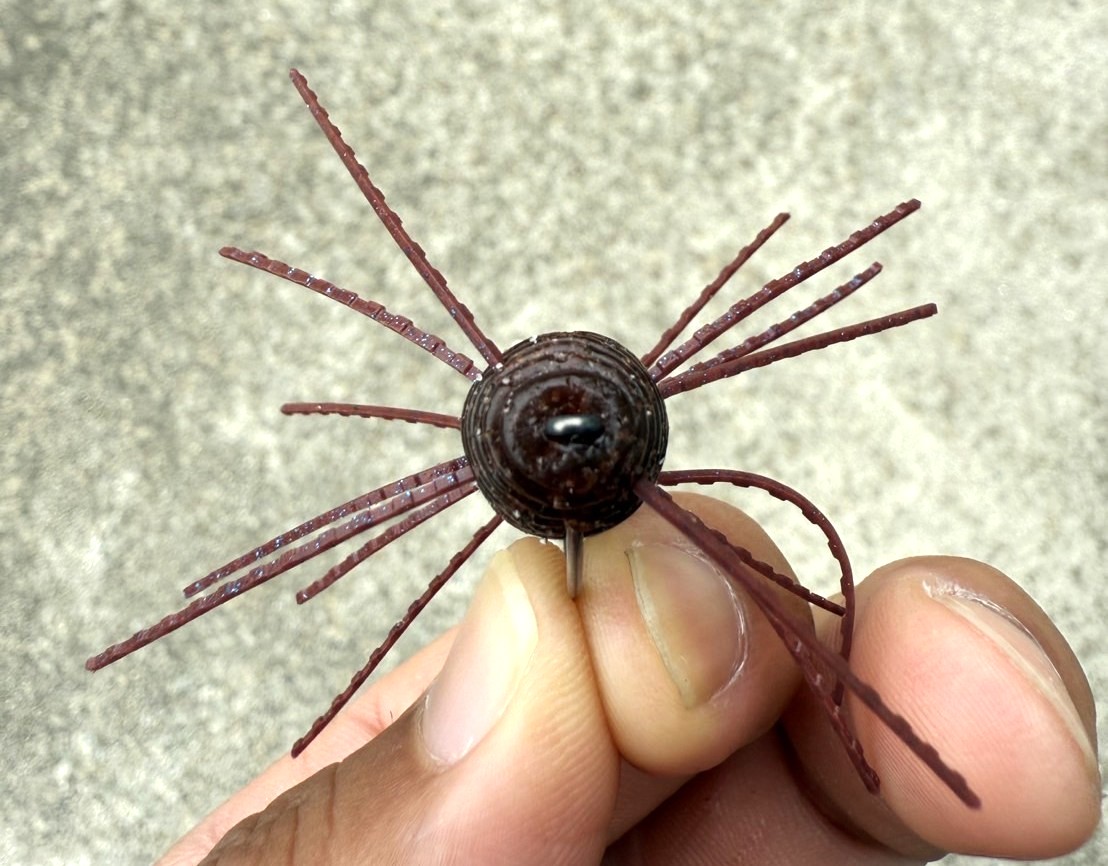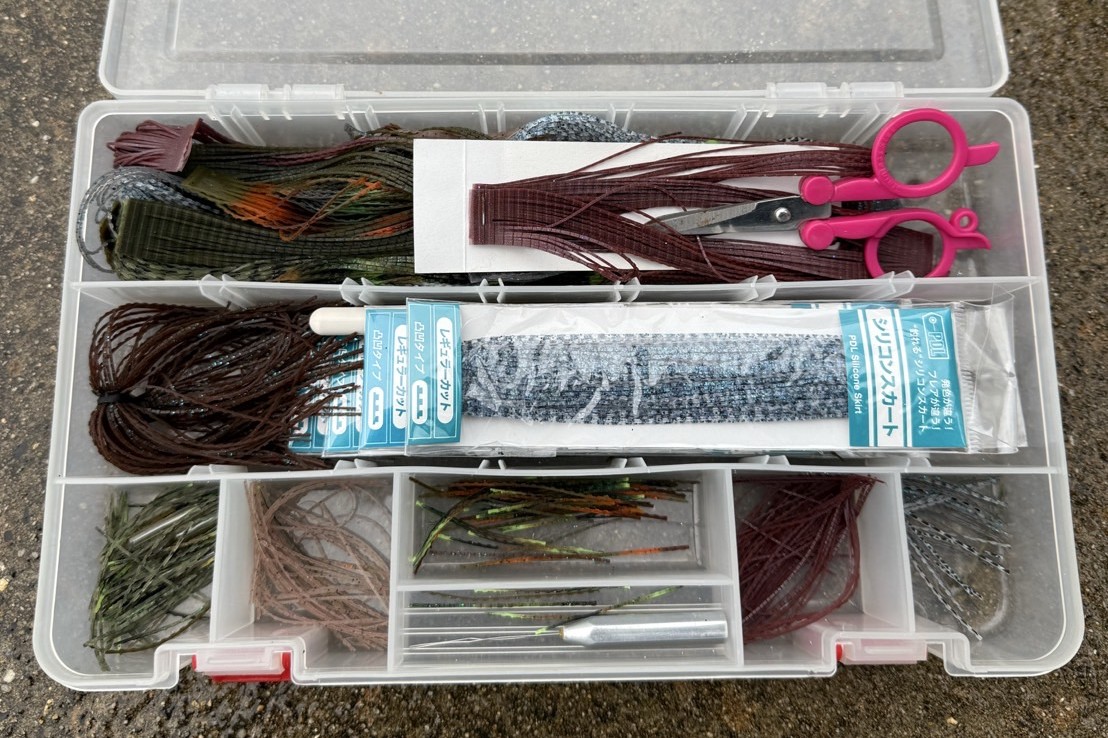 ラバーはTIEMCOのシリコンスカートが、カラーリングも好きで愛用しています。さらに凸凹タイプで水嚙みを意識。