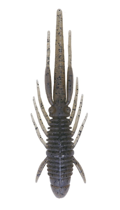 淡い色合いながら、腹のナチュラルパールによる色調変化と、ペッパーを散りばめて存在感を捕捉。エビっぽくも、ややアピーリーに目を惹いてくれることは、ブルスホッグベイビーのボディサイズとも好相性です!