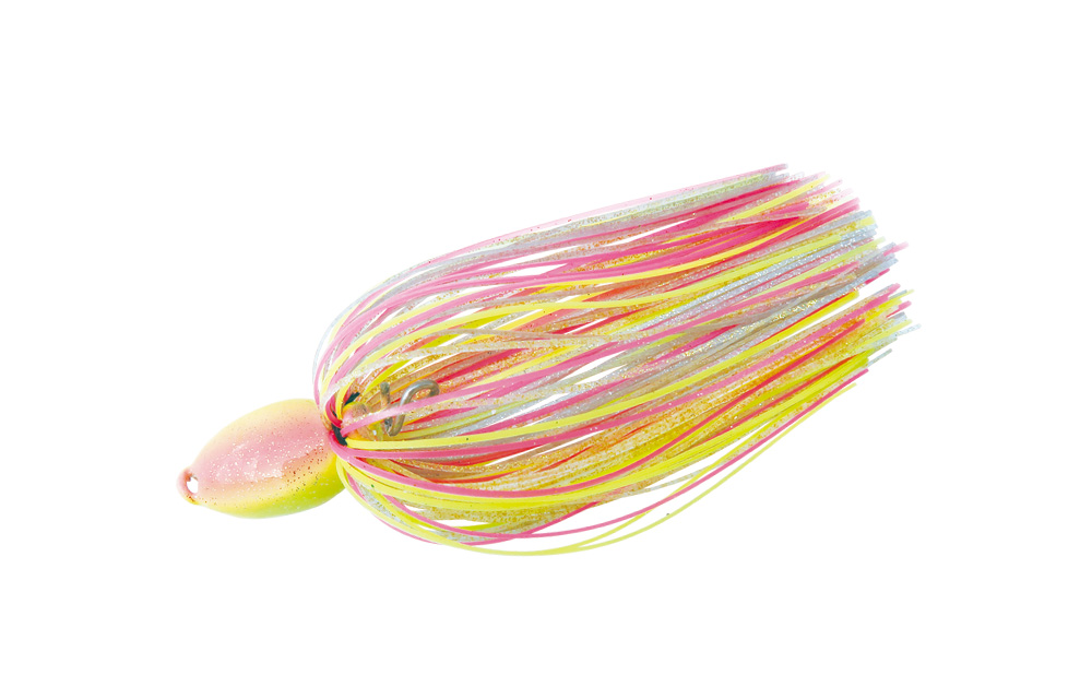 濁った時や光量の少ない状況下において、バスを引っ張るチカラに特化したアピールカラー。ジグストやスイミング時の視認性にも優れます。目を惹くピンク&チャートにシルバー&ゴールドを交えることで、ベイトフィッシュライクな輝きを付与したオリジナルカラーです。