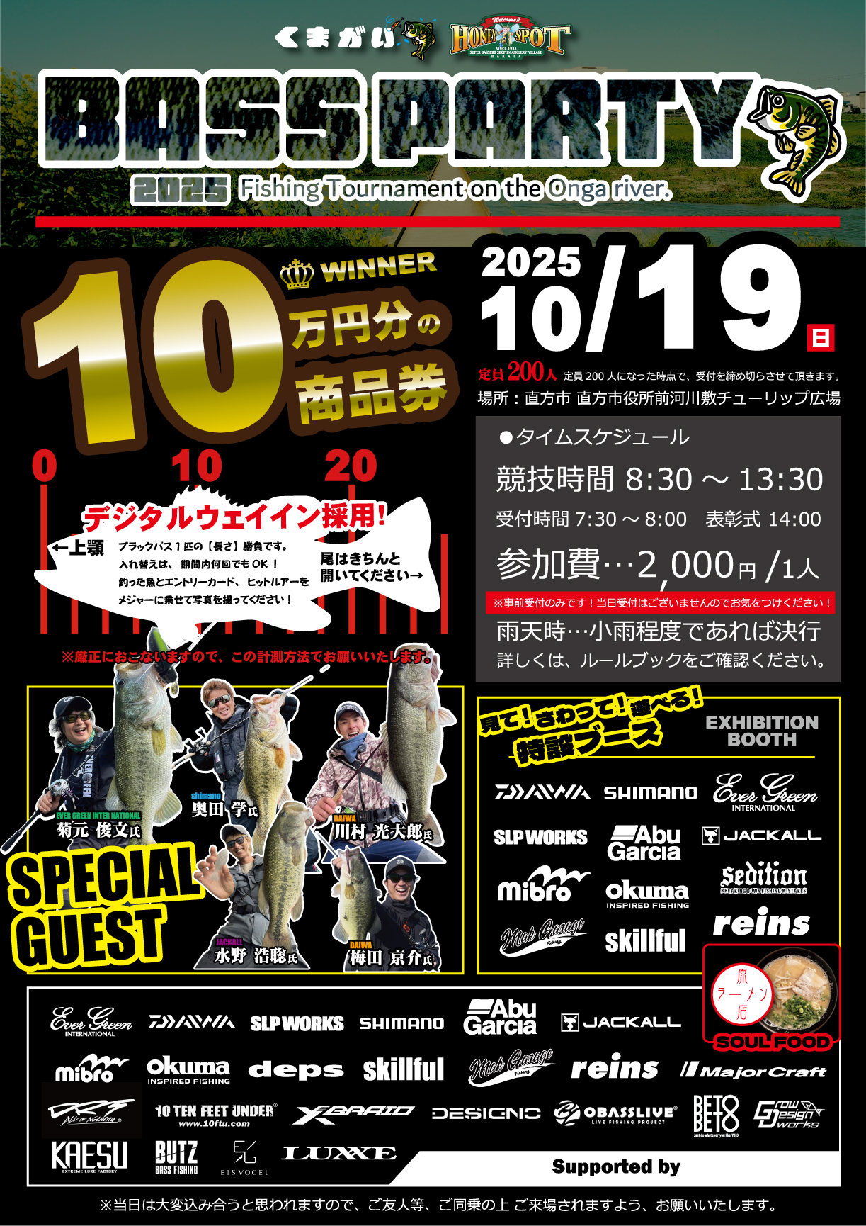 また、翌日10/19(日)は直方市 直方市役所前河川敷チューリップ広場にて開催されます『BASS PARTY2025』にも川村光大郎が参加予定なります!