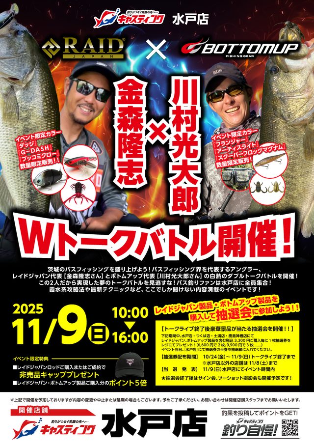 当日は、イベント限定販売のフランジャー『オショロコマ』、スクーパーフロッグマグナム&ダディ『ブルフロッグ』、アーティスライト『ボトムランド』やオンラインストア限定品も数量限定販売‼
