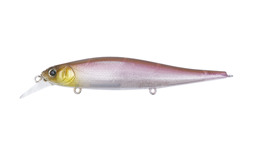 ジャークベイトの実績色クラウンを、ボトムアップならではの味付けに。背中のゴールドを透けさせることでハイプレッシャーフィールドでの実用性を高めるとともに、ボディ側面とのギャップがフラッシングをキワ立たせます。G.B.はゴーストバックの略。