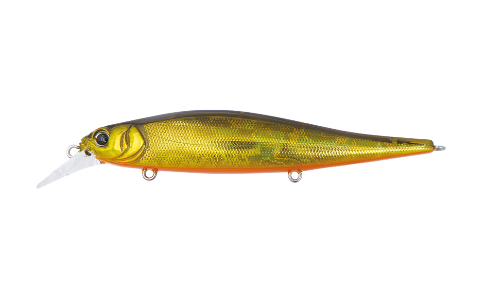 マッディウォーター、ローライト、荒天時など、アピール力が求められる状況で真価を発揮する、実績の強アピールカラー。濃いゴールドに、背のブラック&腹のオレンジベリーとの色調変化も最強で、広範囲や深いレンジからバスを引き寄せる効果が高いことが特徴です。