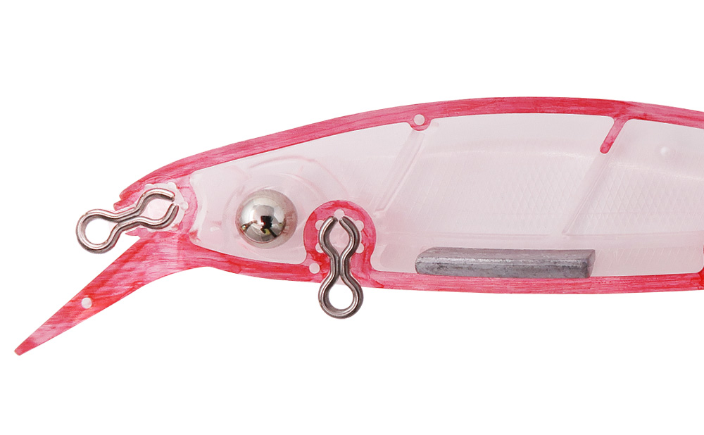ベリーには初動からベストアクションを促し、ストップ時の身震いを生み出す低重心固定ウエイトを採用。頭部には、ルーム内で適度に動き、程良いコトコト音を発するウエイトボールを配置。