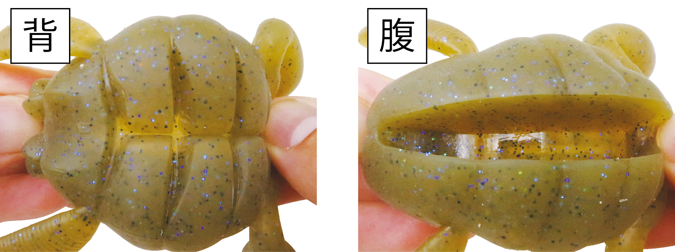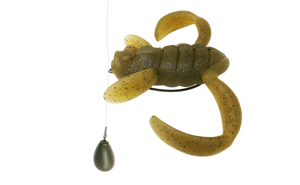 左右に開いたアームはしっかり水を掴んで移動距離を抑えつつ、細かな誘いでもピョコピョコと開閉して生命感を増幅します。