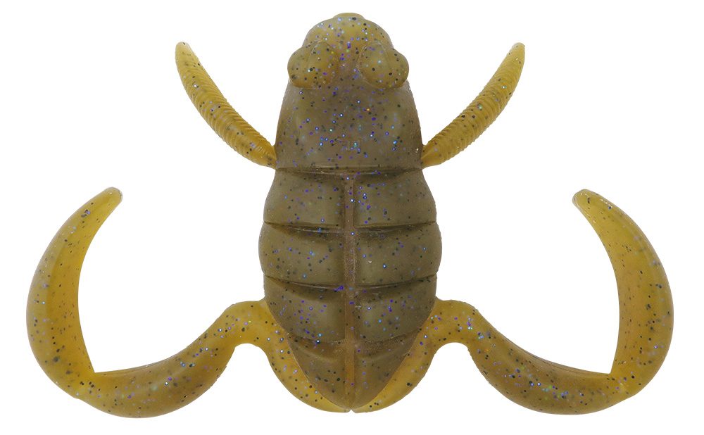 ワームタイプ問わず良く釣れるカラー。高密度に入れたブルーフレークが、アクション時の艶めかしさを引き立てます。ダウンショットリグやジグトレーラー等、沈めて使うにも相性の良いカラーで、ブルーギルをイミテートするにも向いています。