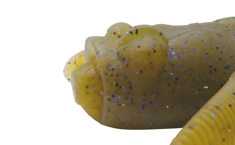 水辺でよく見かける、ダークグリパンなカエルをイミテート。濃いシルエットとボトムやカバーへの馴染みを兼備するため、水面・中層・ボトムとあらゆるレンジで効果を発揮するオールマイティカラーです。