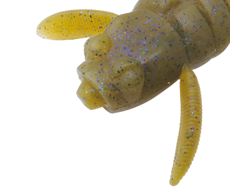 リアルなキックアクションとナチュラルな波紋を生む、オリジナル形状のレッグ。エスケープアクションが吊るしを見切るバスにもスイッチを入れます。また、伸びたレッグが戻る動きはブレーキ効果をもたらし、移動距離を抑えた誘いにも貢献。
